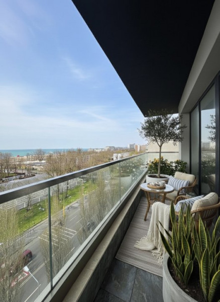 3 camere cu vedere frontala spre mare si lac, situat in zona Mamaia Central, intr-un bloc finalizat, pe malul lacului. Blocul are o infrastructura executata conform standardelor actuale: fundatie pe 65 de piloti forati, cu diametrul de 90 cm, la o adancime de aproximativ 17 m. Fatada ventilata, cu rol in eficienta energetica si durabilitate.